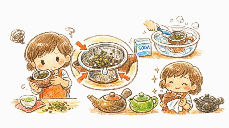 実は、重曹にはこびりついた茶渋や目に詰まった茶葉をやさしく落とす効果があり、正しく使えば急須もスッキリ清潔に保てます。