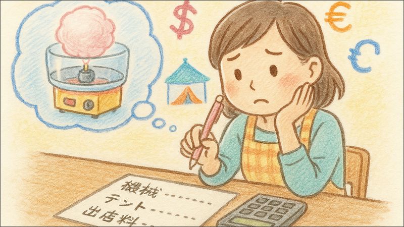 製造機の価格、テントや電源の用意、原料や袋の仕入れ、それに見落としがちな出店料や交通費まで、出店初心者がつまずきやすいポイントをひとつずつ丁寧に紹介していくから安心して読み進めてね。
