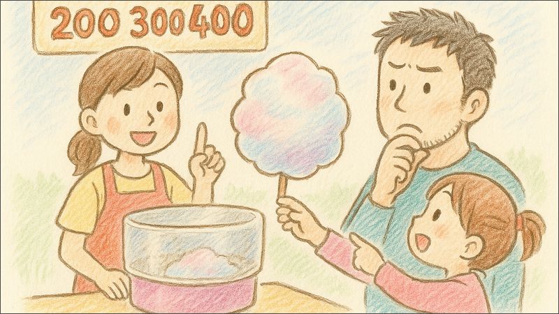 わたあめを買うという行為は、子どもにとって“信頼の瞬間”でもあるからこそ、価格はその信頼を支える柱のひとつなんですよね。