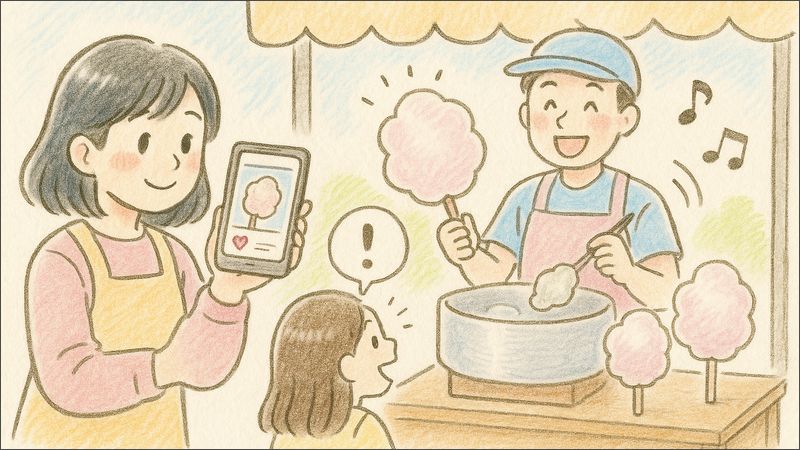 イベントの告知を写真つきで載せたり、お客さんが笑顔でわたあめを持つ瞬間を投稿したり、ストーリーで「今日の空気感」まで伝えてみたら、反応がガラッと変わりました。