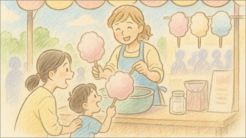 わたあめは、ふわっとして消えてしまうけれど、その時間や笑顔はしっかり記憶に残ります。
