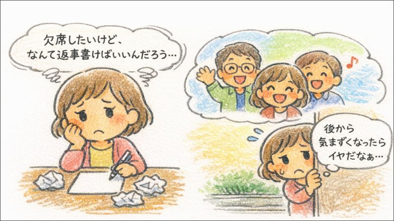 欠席は悪いことじゃないのに、返し方ひとつで気まずさが残ってしまうことがあります。