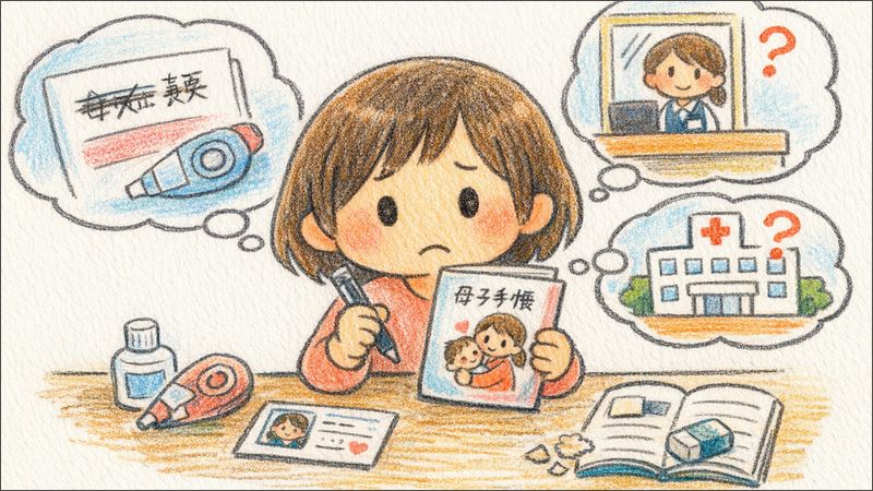 母子手帳の表紙に旧姓を書いてしまったと気づいたときって、「えっ、これ大丈夫?」って一気に不安になりますよね。