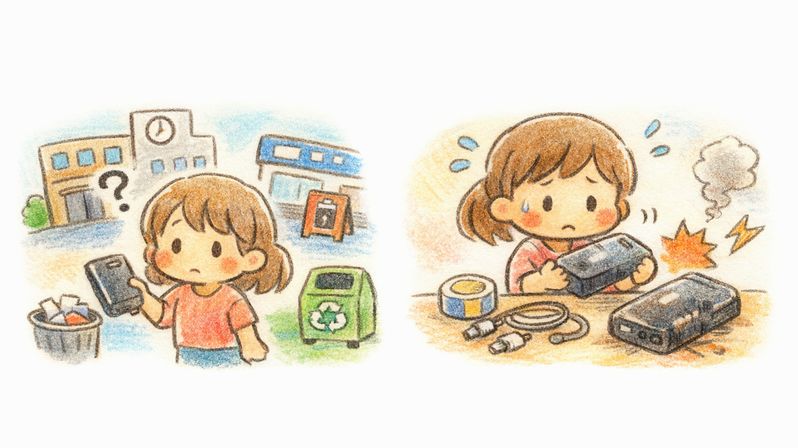 モバイルバッテリーの処分は、ルールがバラついていて不安になりやすいんですけど、順番を決めればちゃんと進められますよ。