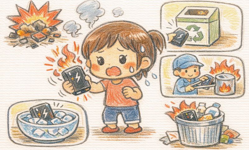 まず一番にお伝えしたいのは、熱を持っている状態のモバイルバッテリーは、決して「そのままゴミ箱へ」と急いではいけないということです。