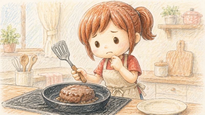 私もはじめてハンバーグを作ったとき、竹串で確認するのを忘れたまま食卓に出してしまって、食べながら「もしかして生だったかも」とヒヤッとしたことがあります。