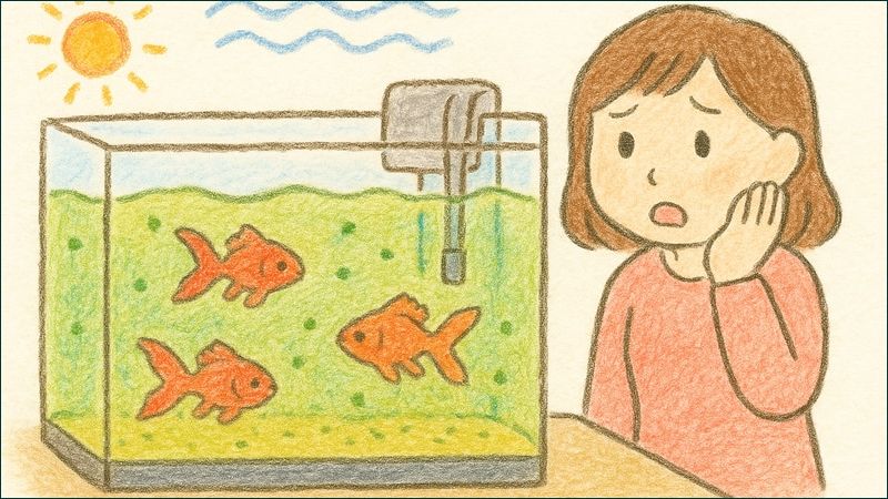 太陽光がたっぷり入る窓際の水槽や、エサの食べ残しが多い、掃除の頻度が低めの水槽などは、アオコにとってまさに“ごちそう&快適空間”。