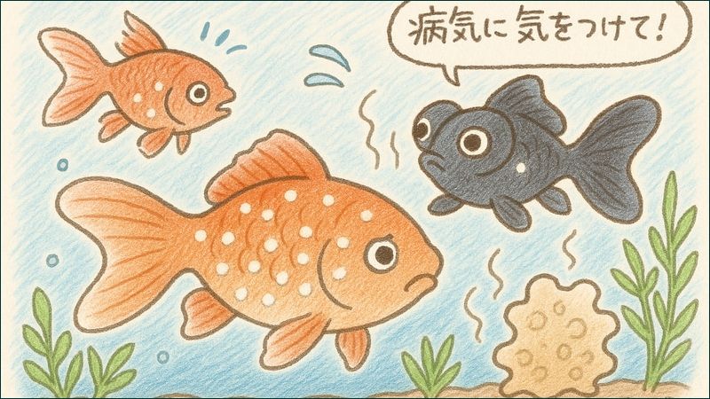 私自身も過去に、前日まで元気に泳いでいた金魚が、翌朝には体に小さな白い点をまとってじっとしている姿を見つけ、心臓がドキッとしたことがあります。