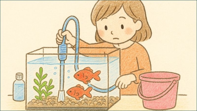 週1の簡単掃除+月1回の底床クリーニングでOK!バケツやホースを使ったラクな掃除法を解説。