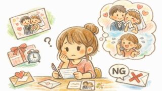 イベント・行事・お祝い事 結婚式招待状の返信メッセージで迷わない!友達に送る気の利いた例文と書き方まとめ 結婚式の招待状返信メッセージに悩む人へ。友達向けのカジュアル例文(出席・欠席・ユーモア)と失礼にならない書き方、NG表現、気遣いポイントをわかりやすく紹介します。 2022.07.22 2026.02.20 イベント・行事・お祝い事